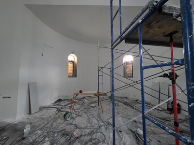 Пречи́стому Твоему́ о́бразу покланя́емся, Благи́й,/ прося́ще проще́ния прегреше́ний на́ших, Христе́ Бо́же:/ во́лею бо благоволи́л еси́ пло́тию взы́ти на Крест,/ да изба́виши я́же созда́л еси́ от рабо́ты вра́жия./ Тем благода́рственно вопие́м Ти:/ ра́дости испо́лнил еси́ вся, Спа́се наш,// прише́дый спасти́ мир.