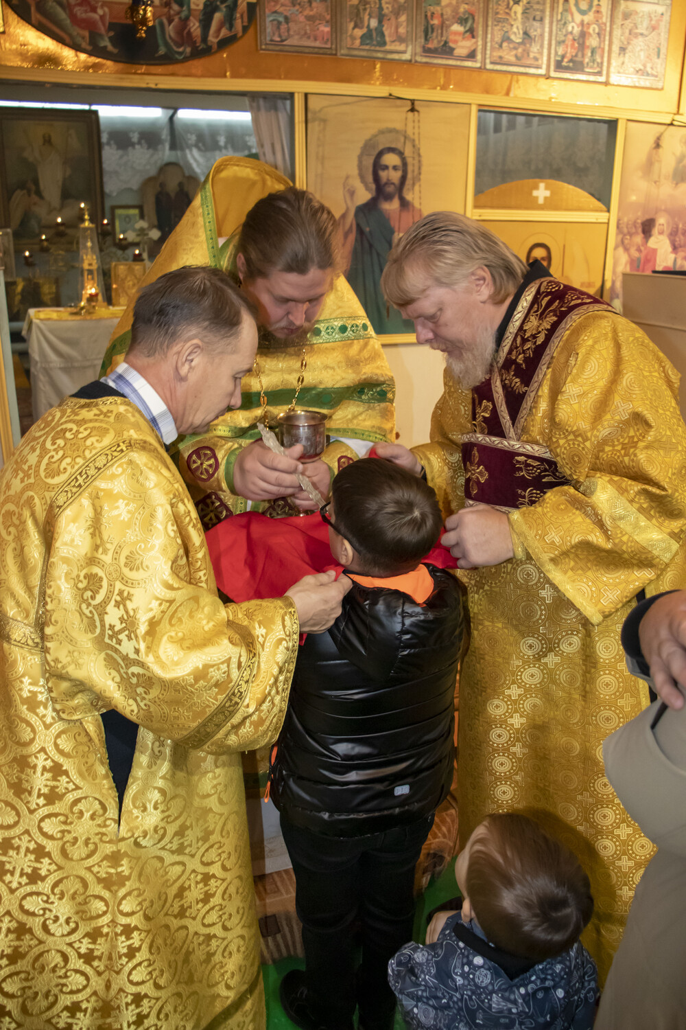 Дорогие братья и сестры! Сегодня, 25 октября, в субботу 20-й седмицы по Пятидесятнице и в день памяти святых мучеников Прова, Тараха и Андроника и преподобного отца нашего Космы святоградца и творца канонов, епископа Маиумскаго, епископ Отрадненский и Похвистневский Кирилл возглавил Божественную литургию в храме во имя Святой Троицы в поселке Сургут. Его Преосвященству сослужили: - Протоиерей Алексий Свистунов, настоятель храма во имя Святой Троицы п. Сургут. - Иерей Александр Красильников, заведующий канцелярией Отрадненской епархии. - Иеромонах Лазарь (Крайнов), клирик кафедрального собора в честь "Табынской" иконы Божией Матери г. Похвистнево. Диаконский чин возглавил диакон Сергий Порохня. Песнопения исполнили смешанный хор храма преподобного Сергия Радонежского села Сергиевск под управлением Надежды Таратухиной. Во время Божественной литургии епископ Кирилл прочитал молитву о Святой Руси. По завершении богослужения Владыка Кирилл обратился к прихожанам с архипастырским словом. Простая, очень доступная, многопоучительная проповедь Владыки, затронула души и сердца прихожан. В завершение Владыка Кирилл преподал всем благословение. После литургии епископ Кирилл посетил строящийся храм, оценив интенсивность проводимых работ, указал на недочёты, которые будут исправлены в ближайшее время. После осмотра нового храма Владыка, посетил приходское здание, в котором изучил будущие помещения. Владыке Кириллу многая и благая лета! Больше фотографий в альбоме ВК (Нажмите на фото для увеличения изображения) | |