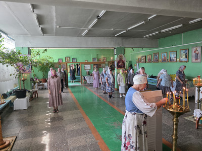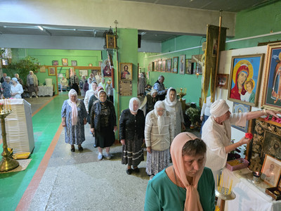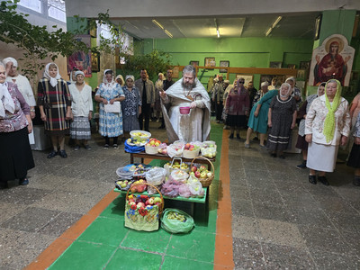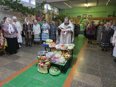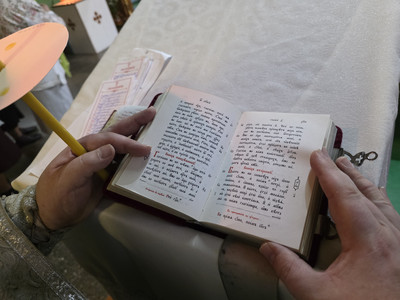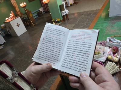 Велича́ем Тя,/ Жизнода́вче Христе́,/ и почита́ем пречи́стыя пло́ти Твоея́ // пресла́вное преображе́ние.
