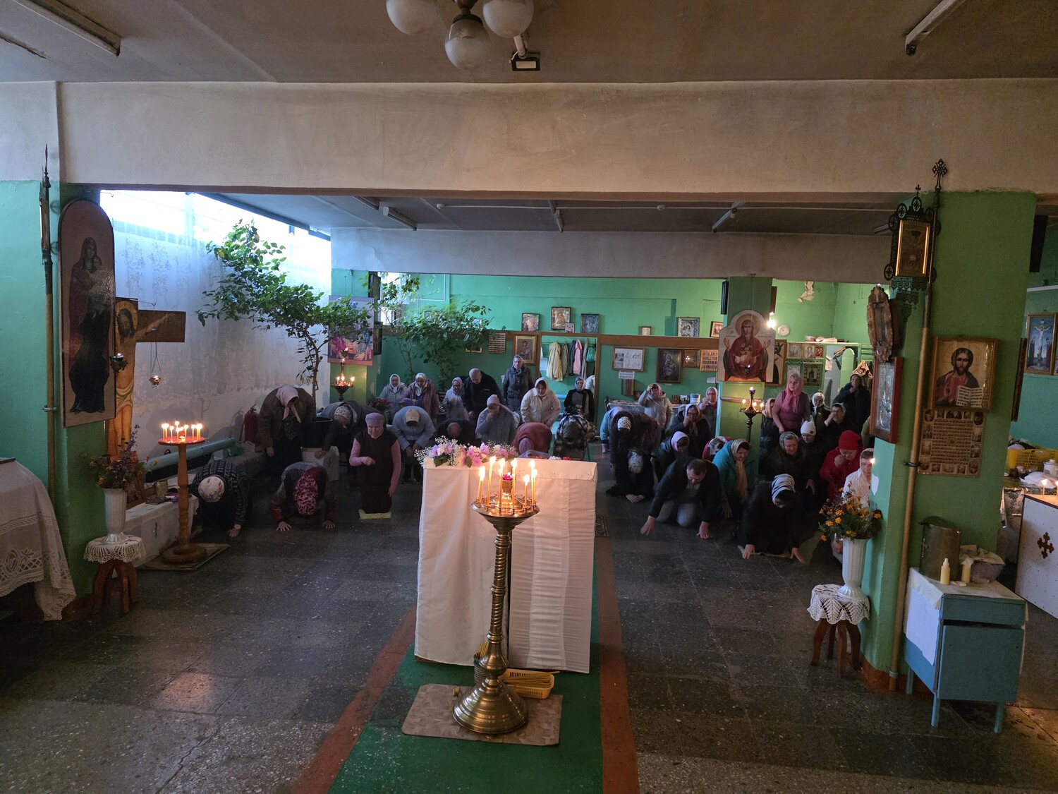 Велича́ем Тя,/ Живода́вче Христе́,/ и чтим Крест Твой святы́й,/ и́мже нас спа́сл еси́// от рабо́ты вра́жия.